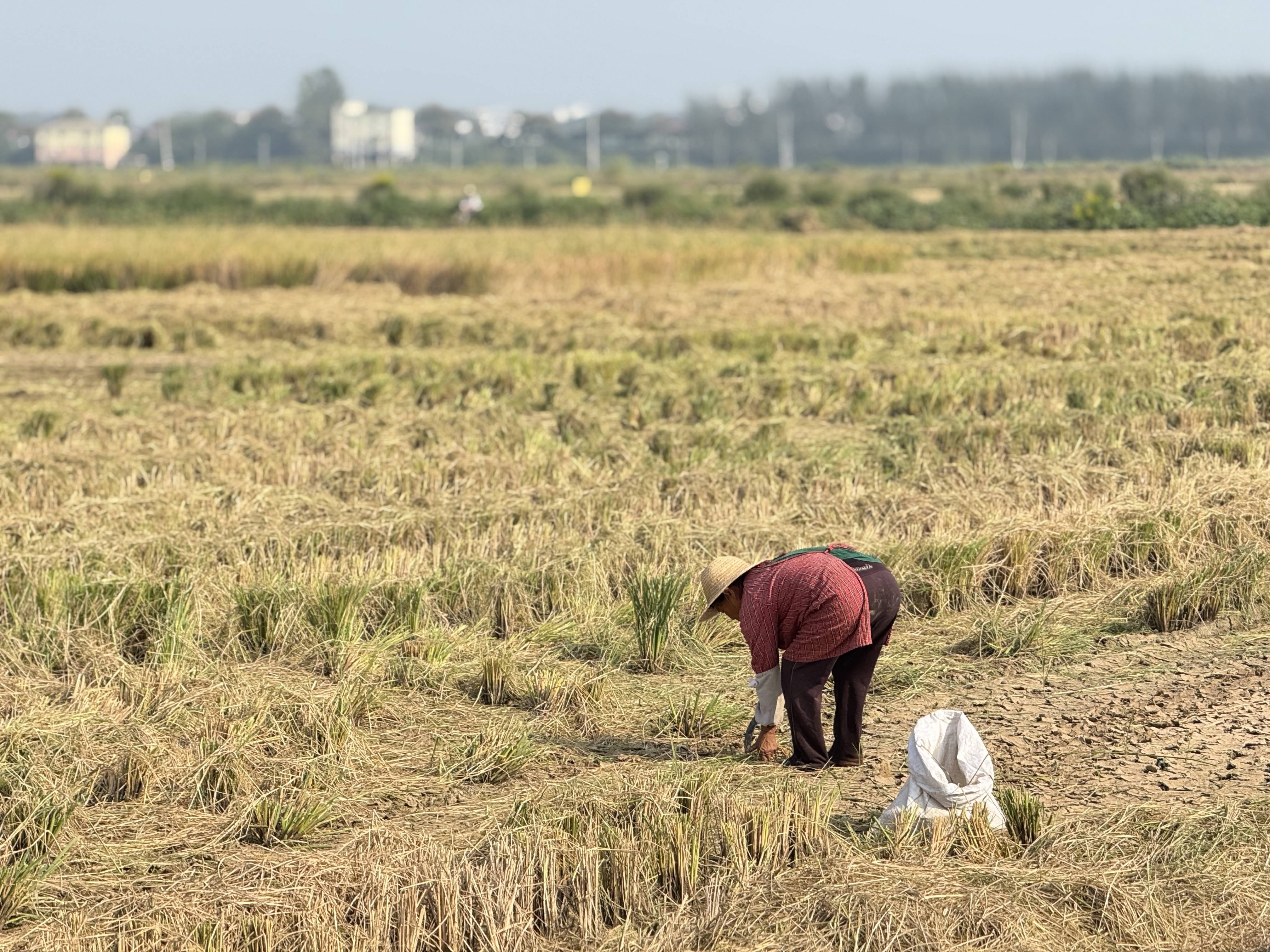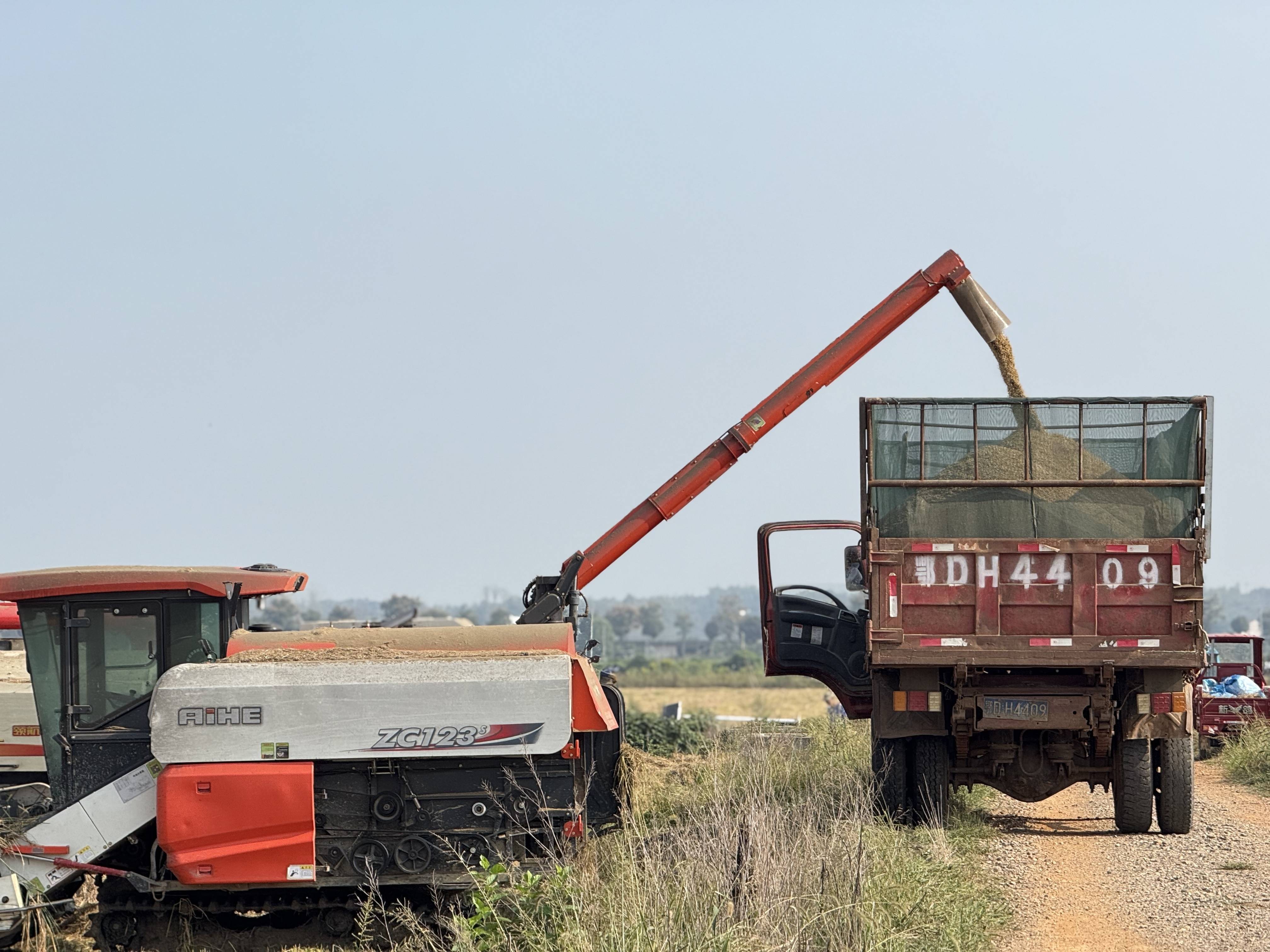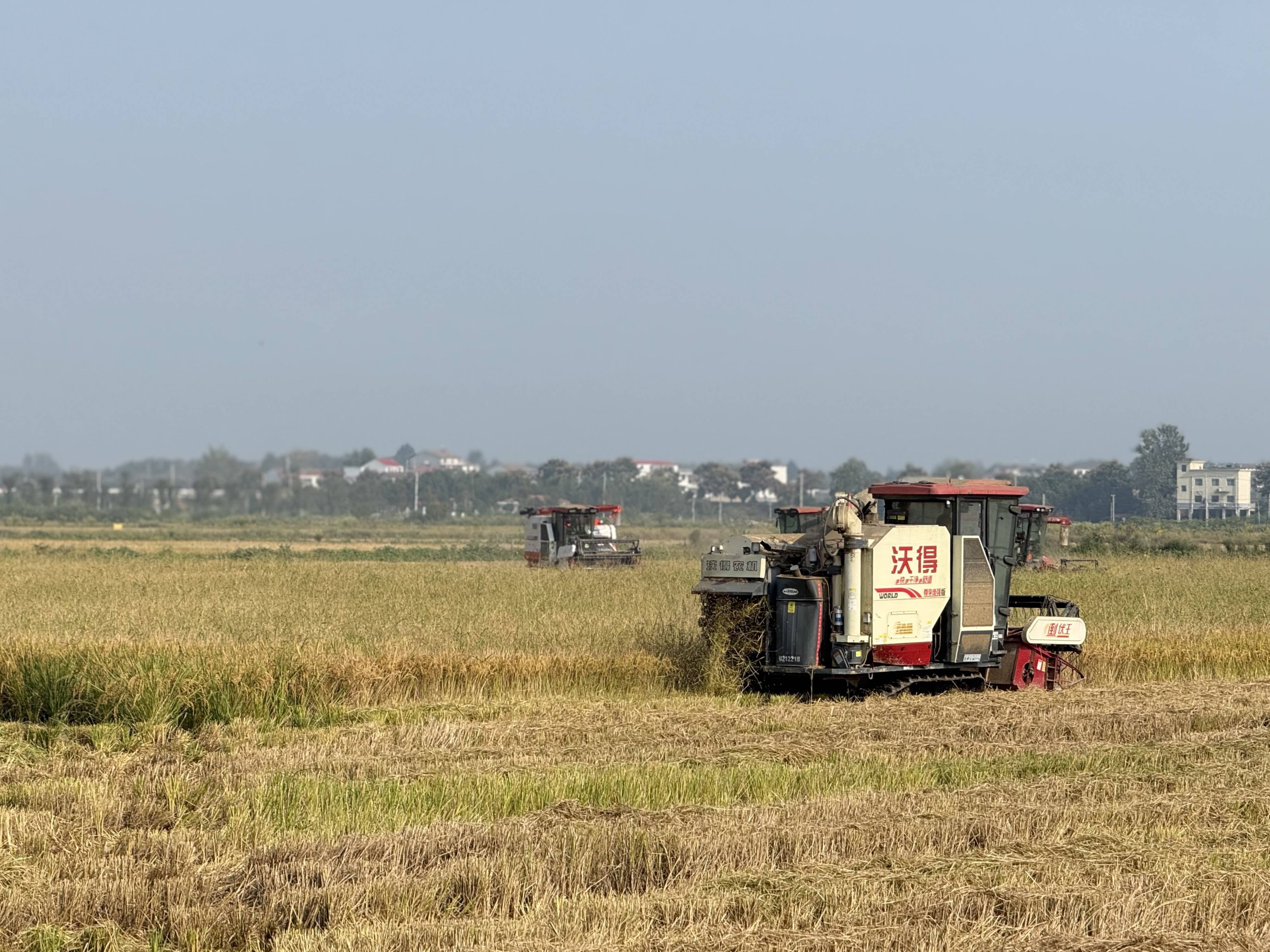 这片即将被完全“揽入怀中”的丰收,来之不易,更凝结着多方智慧与汗水。据湖北咸安向阳湖农业发展有限公司副总经理李凤超回忆,今年水稻于5月底开始播种,生长期遭遇了高温天气挑战。“关键时刻,当地农业植保部门及时提供了科学指导,我们积极采取了有效的抗高温保灌浆措施,为水稻稳产高产打下了坚实基础。”同时,前期的“一喷多促”等田管技术有效保障了灌浆质量,加之农业农村局及场农技人员的持续跟踪服务,共同稳住了今年的收成。“预计亩产干谷能达到1000斤左右,收成比较理想。”李凤超补充道。